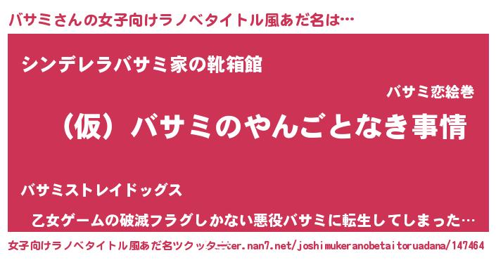 | ヘコむあだ名 | 『バサふぇ~』『バサミ(笑)』 |