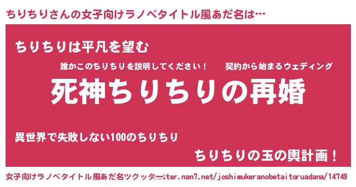 | 男性向けラノベタイトル風あだ名 | 『ノーゲーム・ノーチリチリ』 |