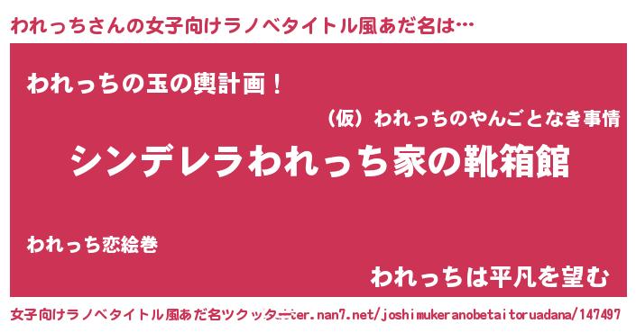 | ピコ太郎風あだ名 | 『ワレ二郎』『ワコ五郎』『ワワ太郎』 |