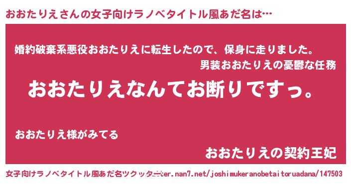 | 意味不明あだ名 | 『自称おおたりえ』『永久保存おおたりえ』 |