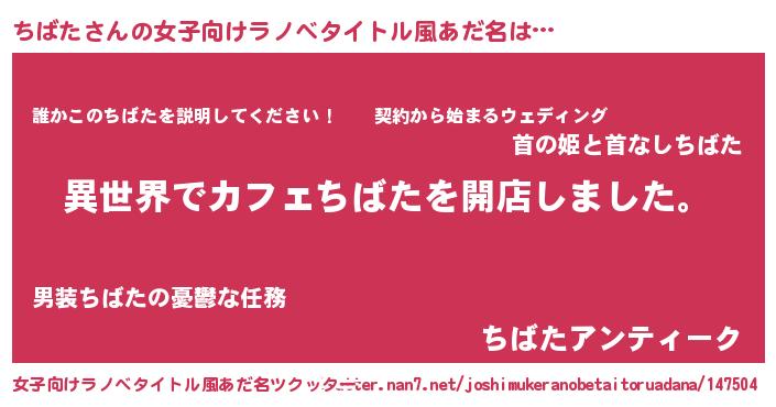 | 男性向けラノベタイトル風あだ名 | 『誰もが恐れるあのちばたが、ぼくの専属メイドになるようです。』 |