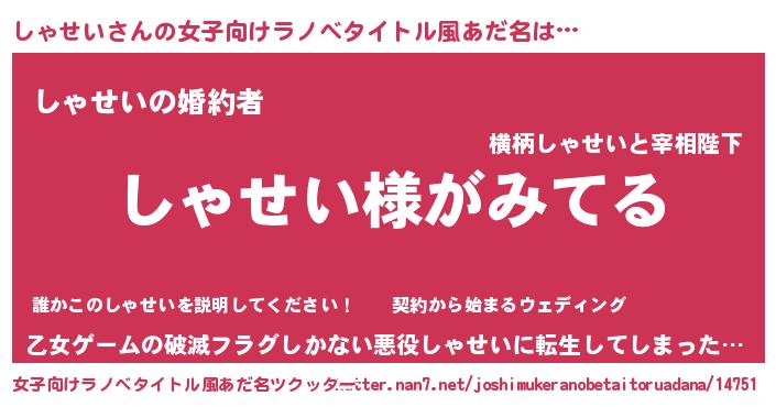 | 意味不明あだ名 | 『とにかく怪しいしゃせい』 |