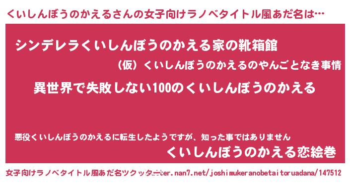 | 胡散臭い通販商品みたいなあだ名 | 『絶対に幸福をもたらす健康食品…その名も「くいしんぼうのかえる」』 |