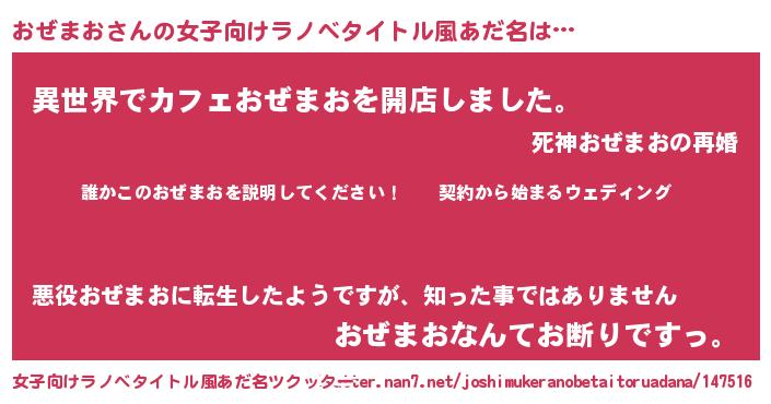 | 男性向けラノベタイトル風あだ名 | 『オゼマオアートオンライン』 |