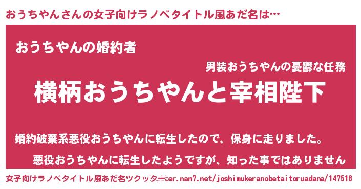 | 男性向けラノベタイトル風あだ名 | 『おうちやんに滅ぼされるだけの簡単なお仕事です』 |
