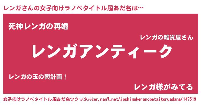 | ヘコむあだ名 | 『レンっ子』『レバニラ』『レンにー』 |