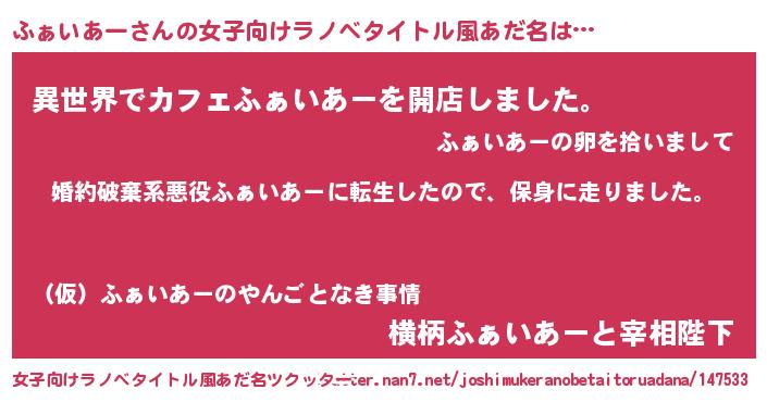 | 胡散臭い通販商品みたいなあだ名 | 『絶対に幸福をもたらす水素水…その名も「ふぁいあー」』 |