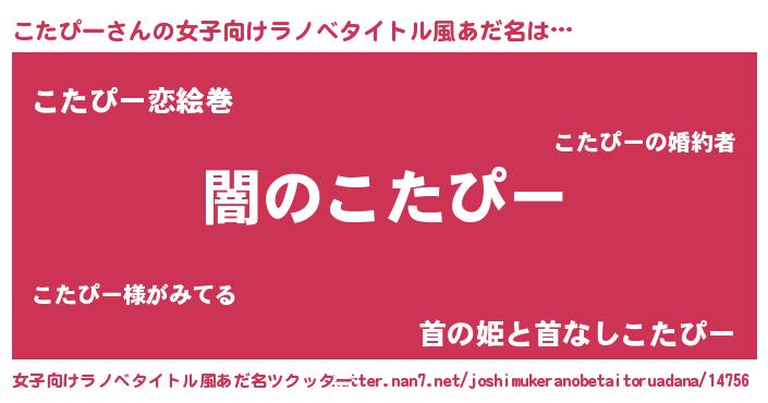 | 男性向けラノベタイトル風あだ名 | 『Re:こたぴーから始める異世界生活』 |