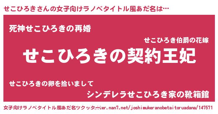 | 男性向けラノベタイトル風あだ名 | 『せこひろきという概念が存在しない退屈な世界 』 |