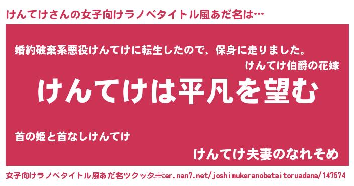 | 男性向けラノベタイトル風あだ名 | 『ダンジョンにけんてけを求めるのは間違っているだろうか』 |
