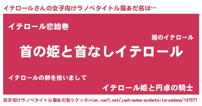 | 男性向けラノベタイトル風あだ名 | 『はたらくイテロールさま!』 |