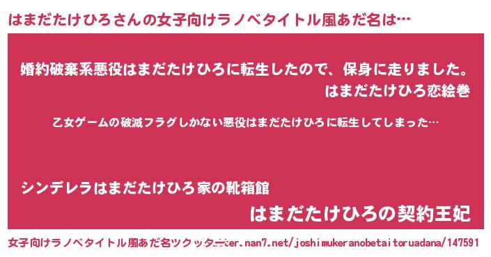 | 意味不明あだ名 | 『住所不定無職はまだたけひろ(10歳)』 |