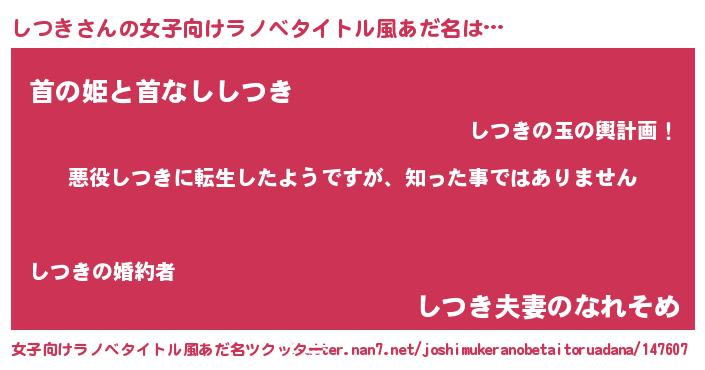 | 胡散臭い通販商品みたいなあだ名 | 『あなたにだけ特別に提供する世界で10本だけ現存している希少なブランデー…その名も「しつき」』 |
