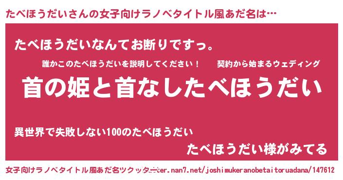 | 男性向けラノベタイトル風あだ名 | 『はたらくたべほうだいさま!』 |