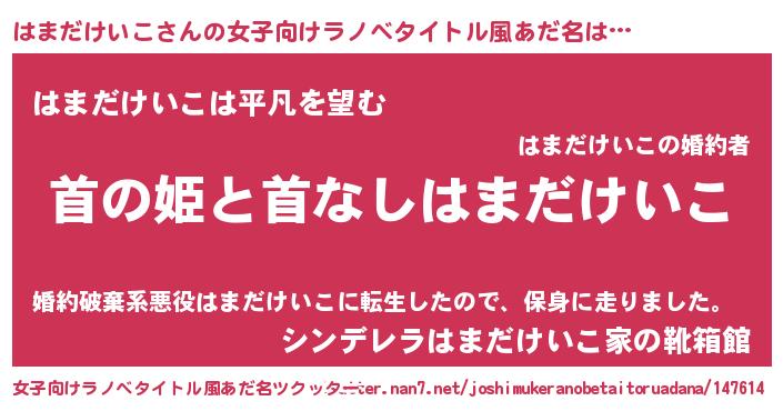 | 男性向けラノベタイトル風あだ名 | 『はたらくはまだけいこさま!』 |