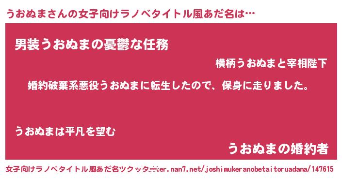 | 男性向けラノベタイトル風あだ名 | 『ウオヌマスレイヤー』 |