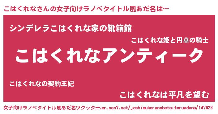 | 胡散臭い通販商品みたいなあだ名 | 『テレビで話題の高麗人参…その名も「こはくれな」』 |