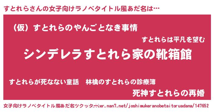 | 胡散臭い通販商品みたいなあだ名 | 『モテモテ間違いなし霊験あらたかなお札…その名も「すとれら」』 |