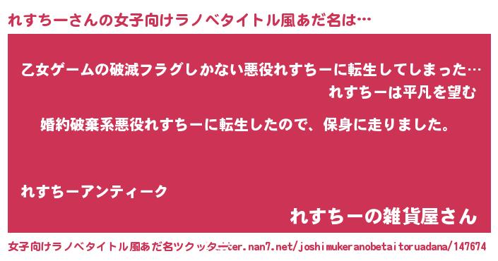 | ヒーロー風カッコイイあだ名 | 『仮面レスダー』『ウルトラれすちーマン』 |