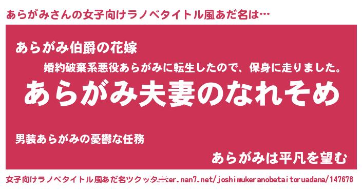 | ファンタジー風あだ名 | 『クインアット』『エターナルアラガミー』 |