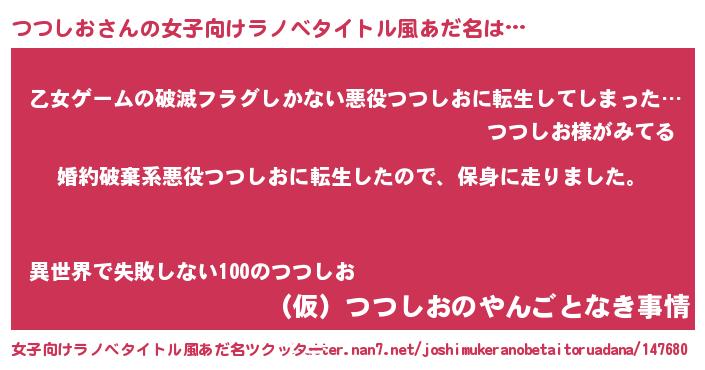 | 男性向けラノベタイトル風あだ名 | 『転生したらつつしおだった件』 |