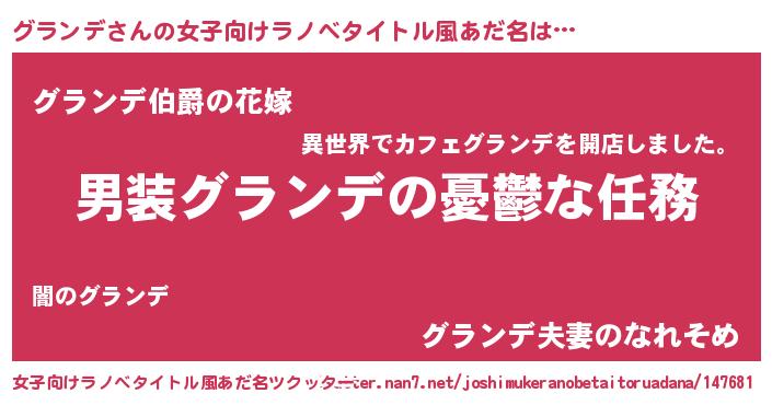| 男性向けラノベタイトル風あだ名 | 『うちのグランデが世界を掌握している!』 |
