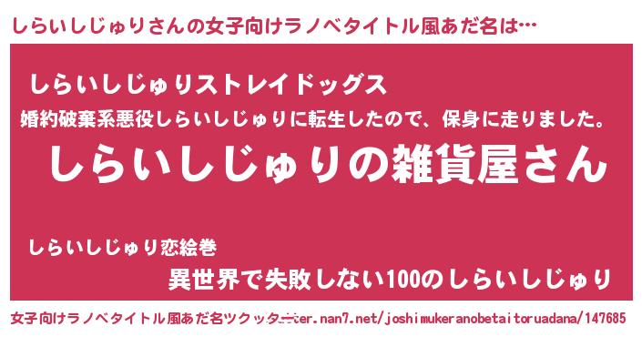 | 男性向けラノベタイトル風あだ名 | 『やはりしらいしじゅりの青春ラブコメはまちがっている 』 |