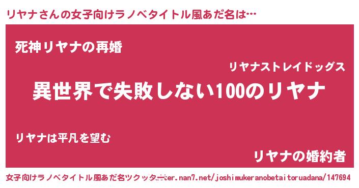 | 男性向けラノベタイトル風あだ名 | 『リヤナという概念が存在しない退屈な世界 』 |