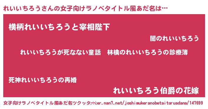 | 男性向けラノベタイトル風あだ名 | 『魔弾の王とれいいちろう』 |