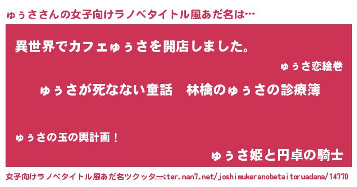 | 意味不明あだ名 | 『住所不定無職ゅぅさ(62歳)』 |