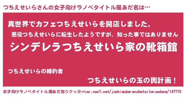 | 胡散臭い通販商品みたいなあだ名 | 『絶対に幸福をもたらす健康食品…その名も「つちえせいら」』 |