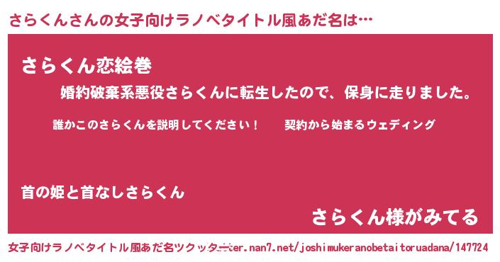 | 男性向けラノベタイトル風あだ名 | 『サラクンアートオンライン』 |