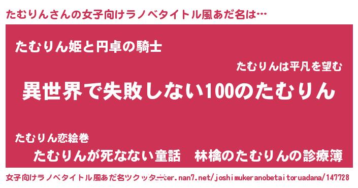 | 男性向けラノベタイトル風あだ名 | 『たむりんという概念が存在しない退屈な世界 』 |