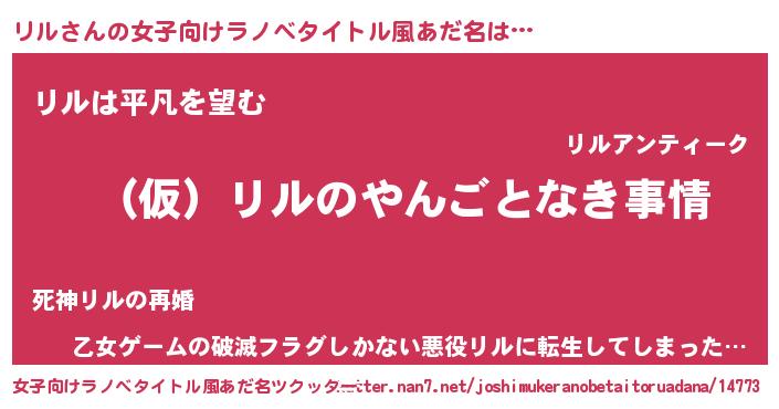 | 男性向けラノベタイトル風あだ名 | 『リルの憂鬱』『魔法科高校のリル』 |
