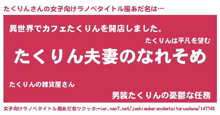| 男性向けラノベタイトル風あだ名 | 『おまえをオタクにしてやるから、俺をたくりんにしてくれ! 』 |