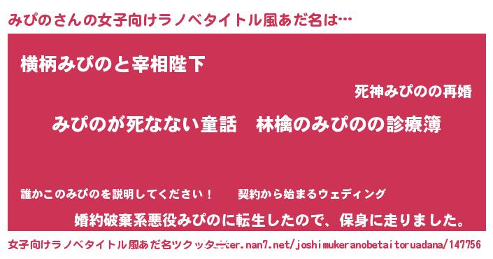 | 意味不明あだ名 | 『住所不定無職みぴの(91歳)』 |