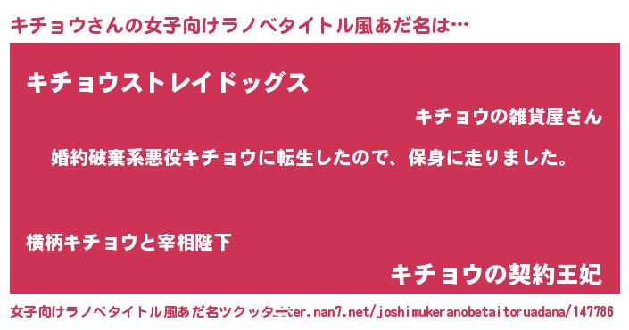 | 男性向けラノベタイトル風あだ名 | 『転生したらキチョウだった件』 |