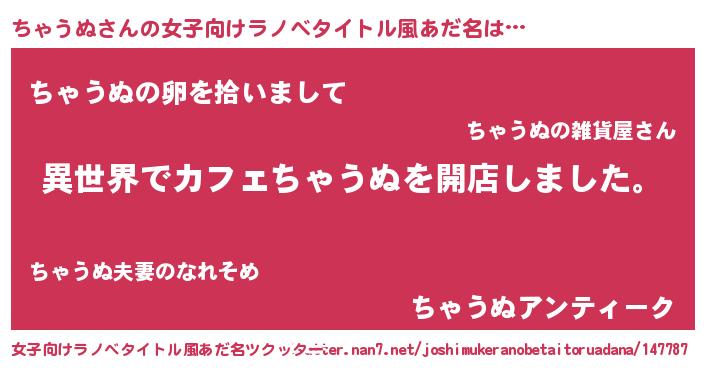 | 男性向けラノベタイトル風あだ名 | 『誰もが恐れるあのちゃうぬが、ぼくの専属メイドになるようです。』 |