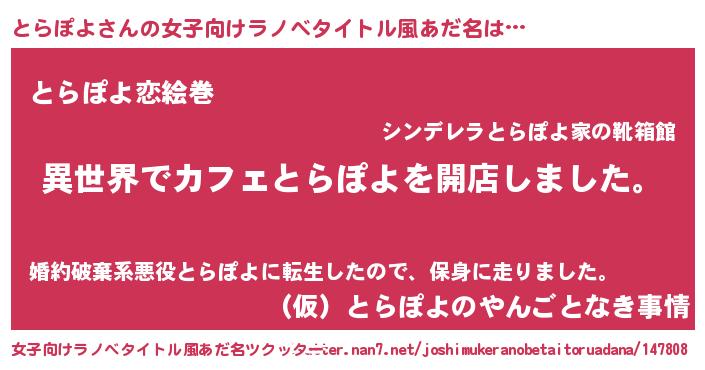 | 胡散臭い通販商品みたいなあだ名 | 『前代未聞の健康食品…その名も「とらぽよ」』 |