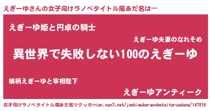 | 男性向けラノベタイトル風あだ名 | 『えぎーゆという概念が存在しない退屈な世界 』 |