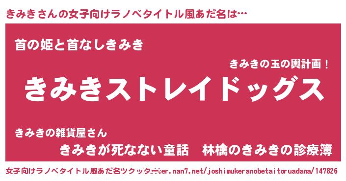 | 男性向けラノベタイトル風あだ名 | 『Re:きみきから始める異世界生活』 |