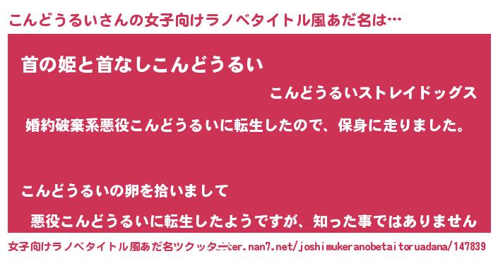 | 男性向けラノベタイトル風あだ名 | 『転生したらこんどうるいだった件』 |