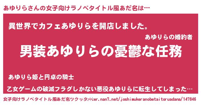 | ヘコむあだ名 | 『あゆりら(小並感)』『豆乳』 |