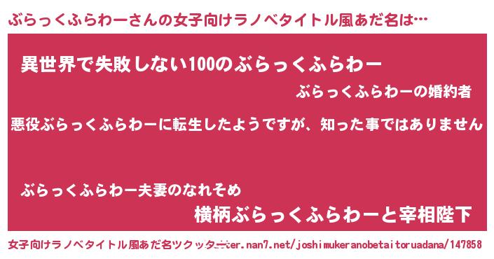 | 男性向けラノベタイトル風あだ名 | 『この素晴らしい世界にぶらっくふらわーを!』 |