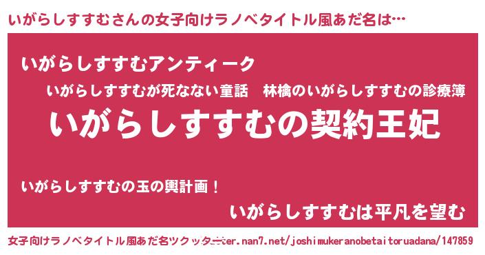 | 胡散臭い通販商品みたいなあだ名 | 『来世でも幸せになれる健康食品…その名も「いがらしすすむ」』 |