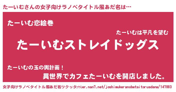 | 意味不明あだ名 | 『自称たーいむ』『永久保存たーいむ』 |