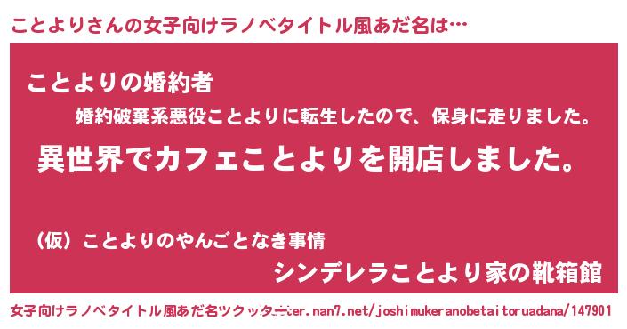 | ヒーロー風カッコイイあだ名 | 『ネオコトヨリ』『ウルトラことよりマン』 |