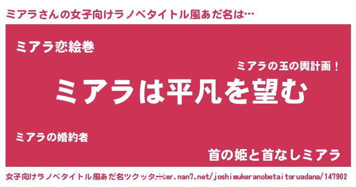 | ヒーロー風カッコイイあだ名 | 『黄金騎士ミア』『正義の使者ミアラ』 |