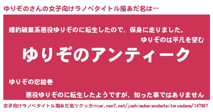 | ファンタジー風あだ名 | 『ゼユリトゥ』『ユリユリヴァット』 |