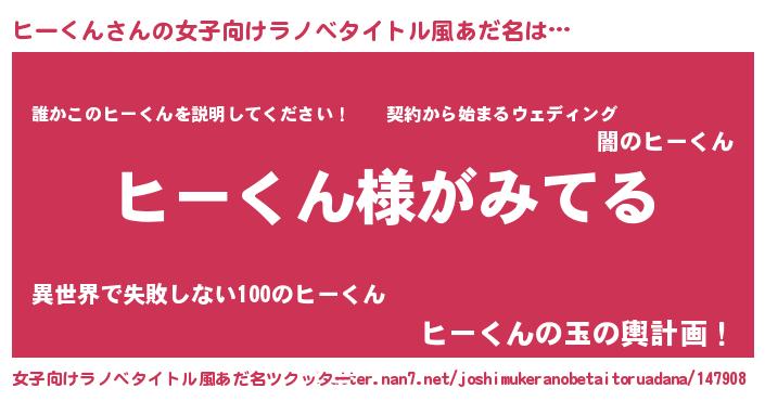 | ヒーロー風カッコイイあだ名 | 『幻影騎士ヒー』『スーパーヒークン』 |